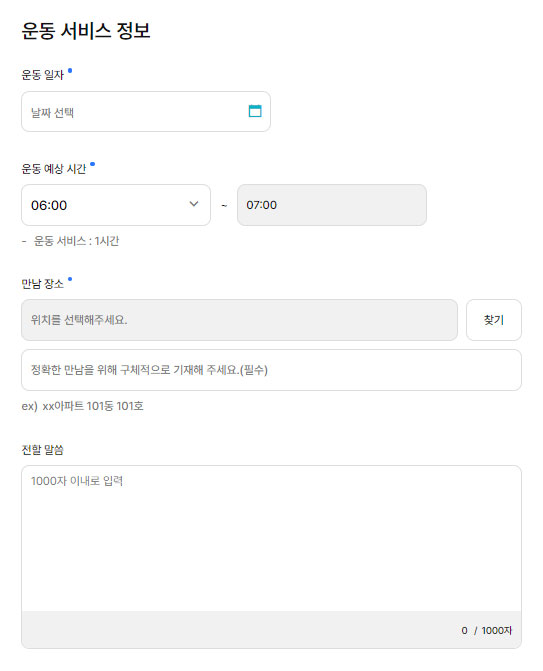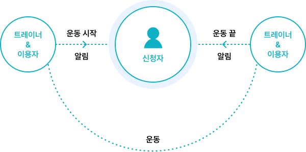 트레이너가 만남 장소에서 이용자(고객)을 만나면 인증샷을 찍어서 보호자에게 보내드리고, 운동이 끝난 후 다시 인증샷을 찍어 보내드립니다.