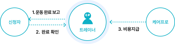 신청자가 최종 완료 확인을 하면, 총 운동 비용의 수수료 30%를 제외한 비용을 지급 해 드립니다(1회 운동 최종 완료 확인 후 매회 적용). 비용 지급은 회원가입 시, 입력하신 계좌로 입금됩니다.